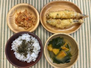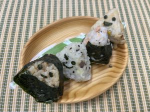 (忍者おにぎりおかか・鮭とわかめ・竹輪コーン・さつまいも)