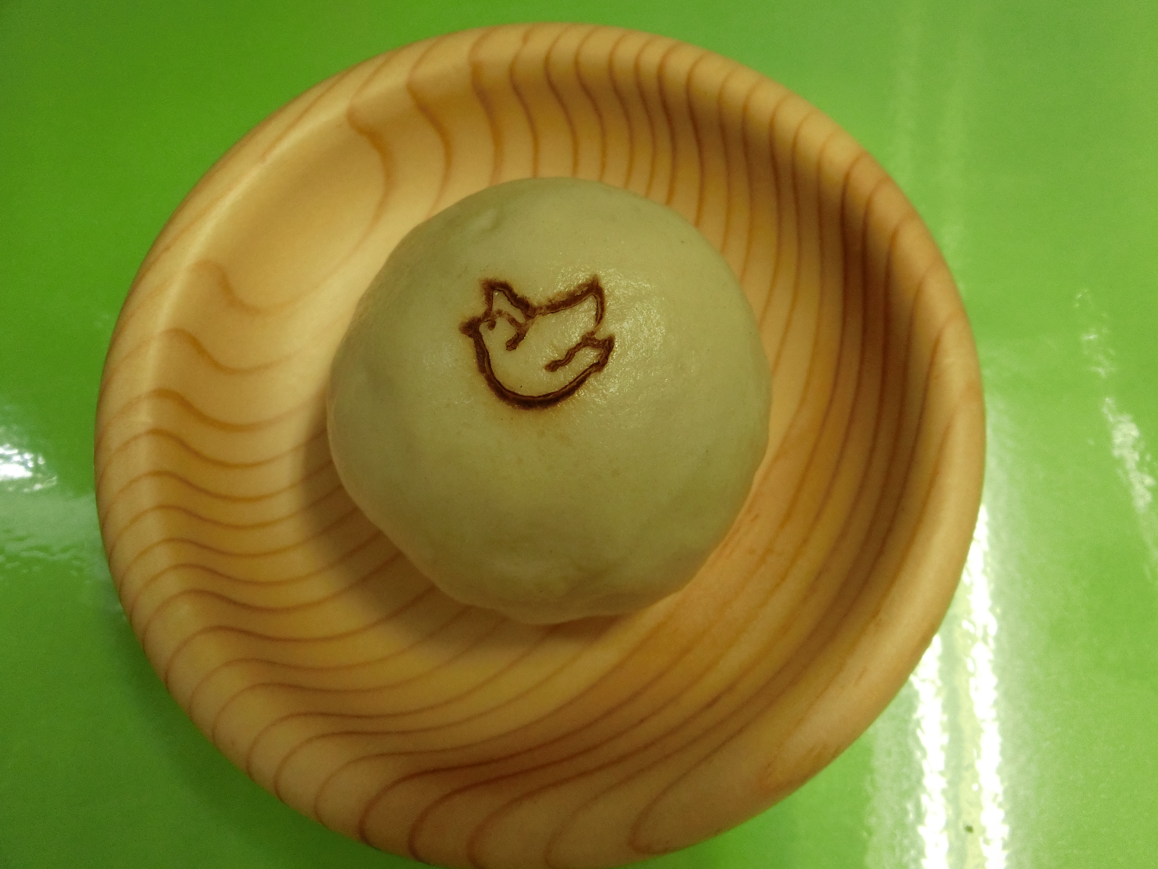 ふっくらと蒸しあがったおまんじゅうには鳩の焼き印がついています。