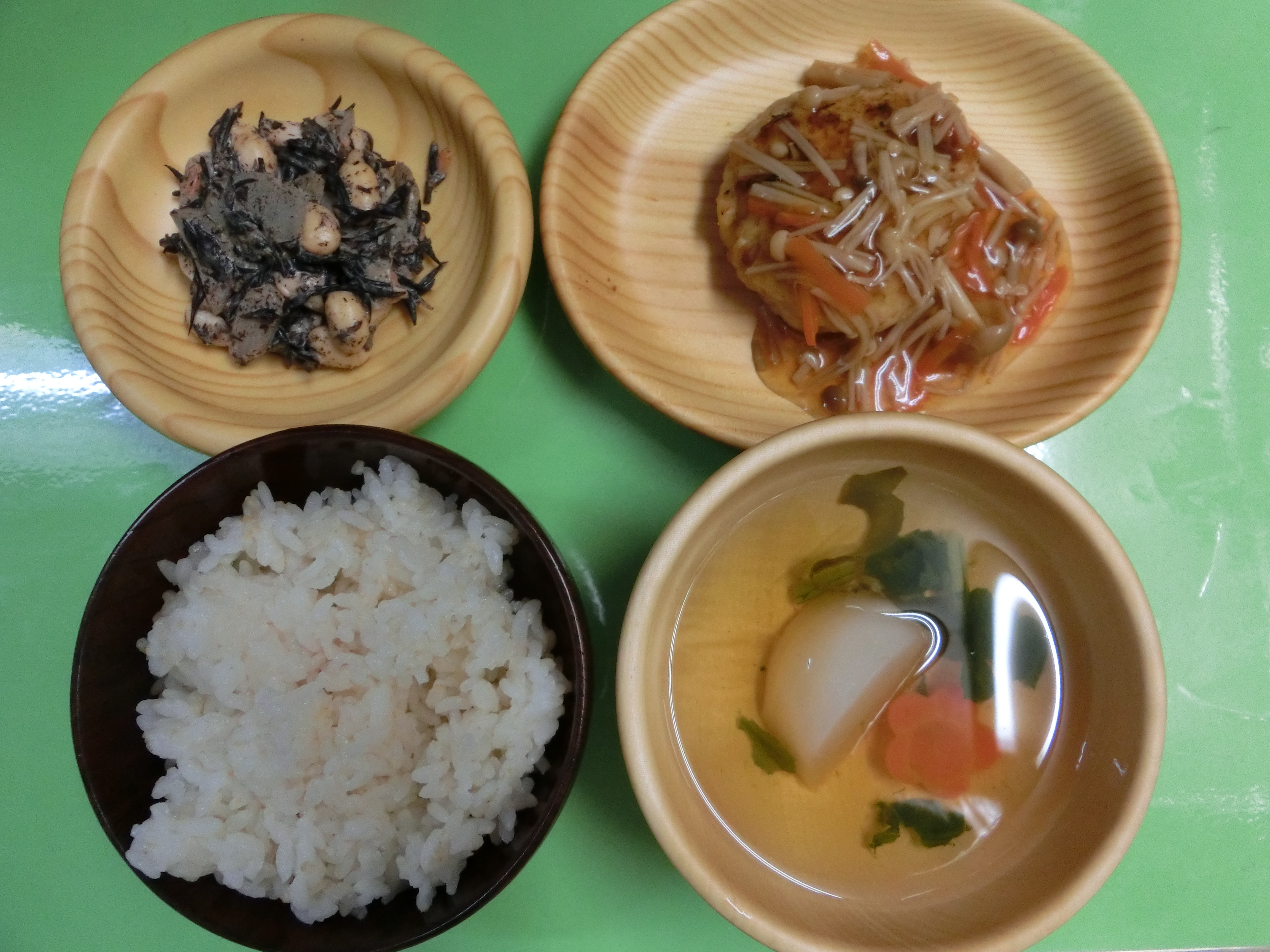 今日のごはんはわかめとごまが入ったまぜごはんでした。