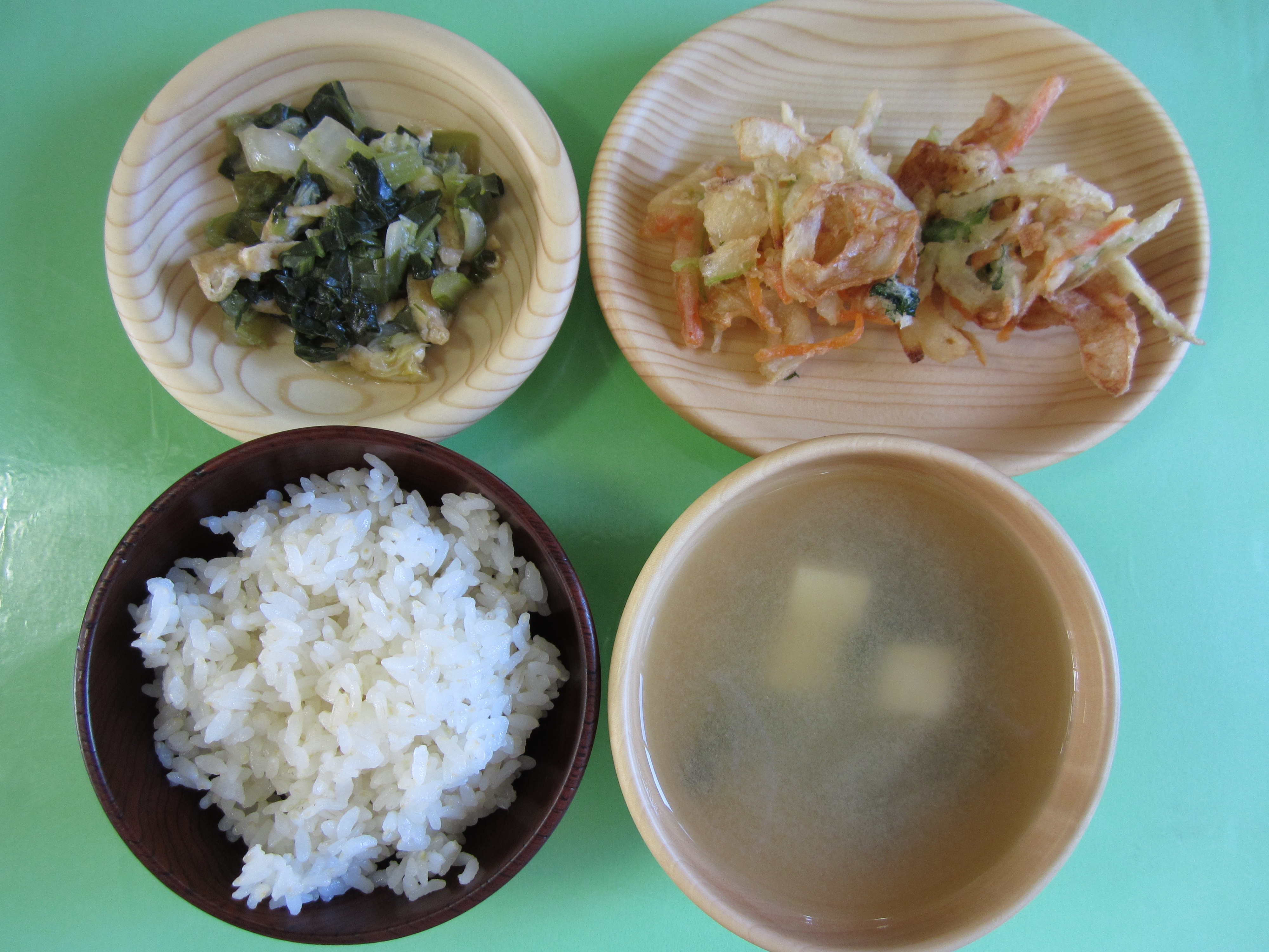 お野菜の味がよく出たお汁に、油揚げの甘みが染み出て葉物が苦手な子もぺろりっ♪
