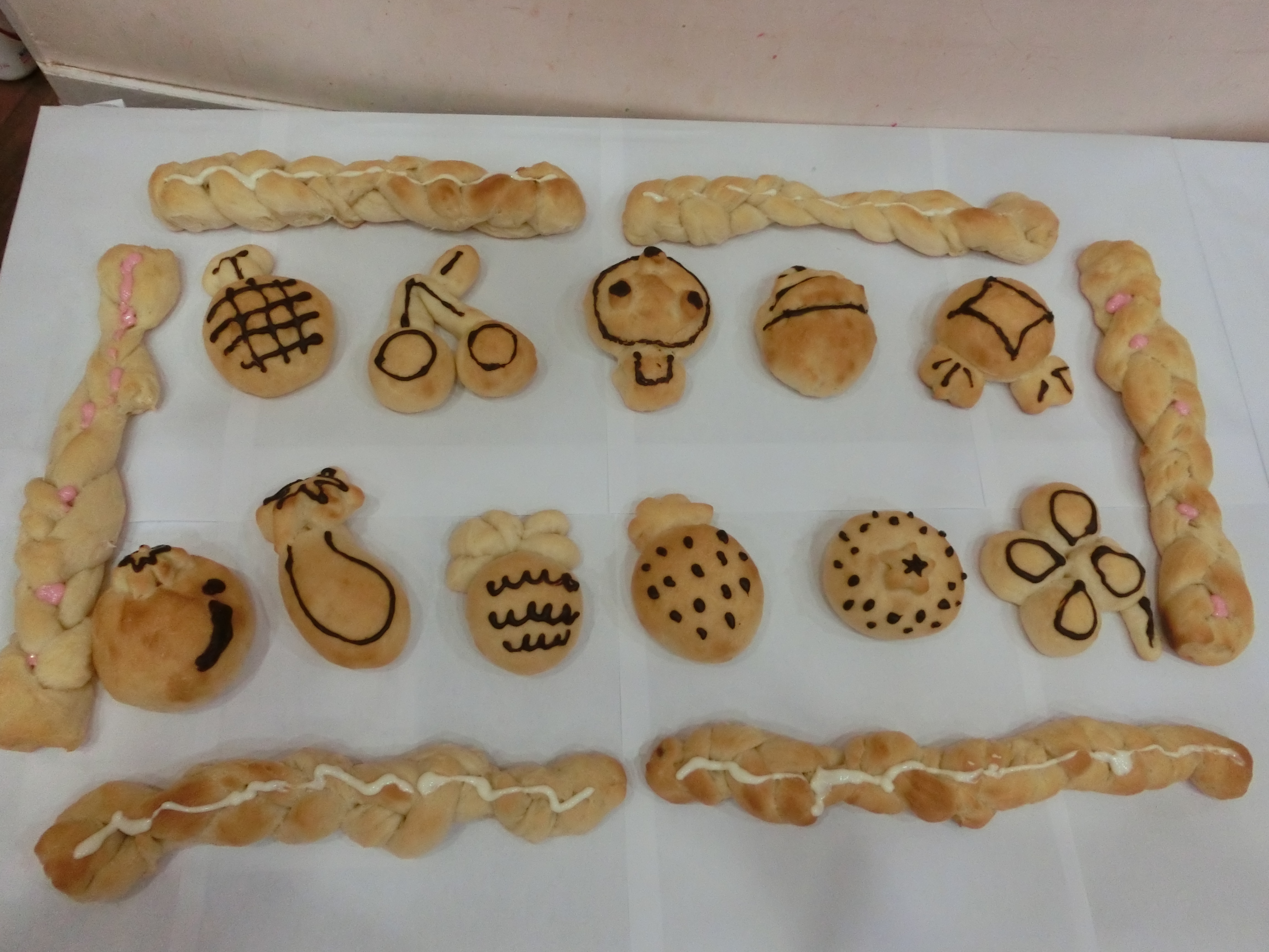 自分のマークの形をパンにしてみました。給食室からの卒園のお祝いとして。