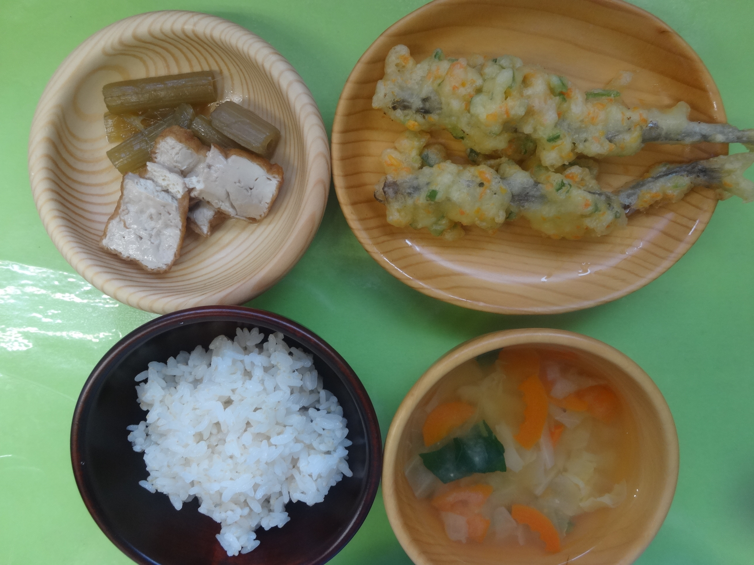 今日も子どもたちと一緒にふきのすじ取りをしました。