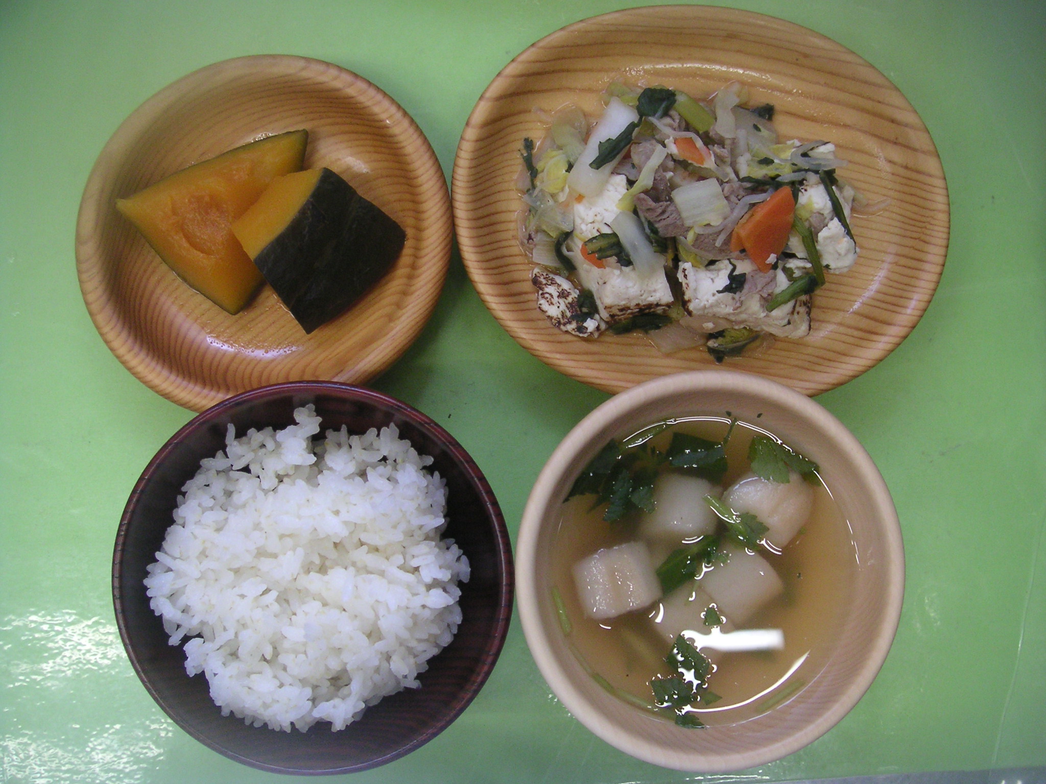人参やじゃがいもはもちろんのこと、今日すき焼き風煮で使用した春菊まで名前を知っている子もいました^^