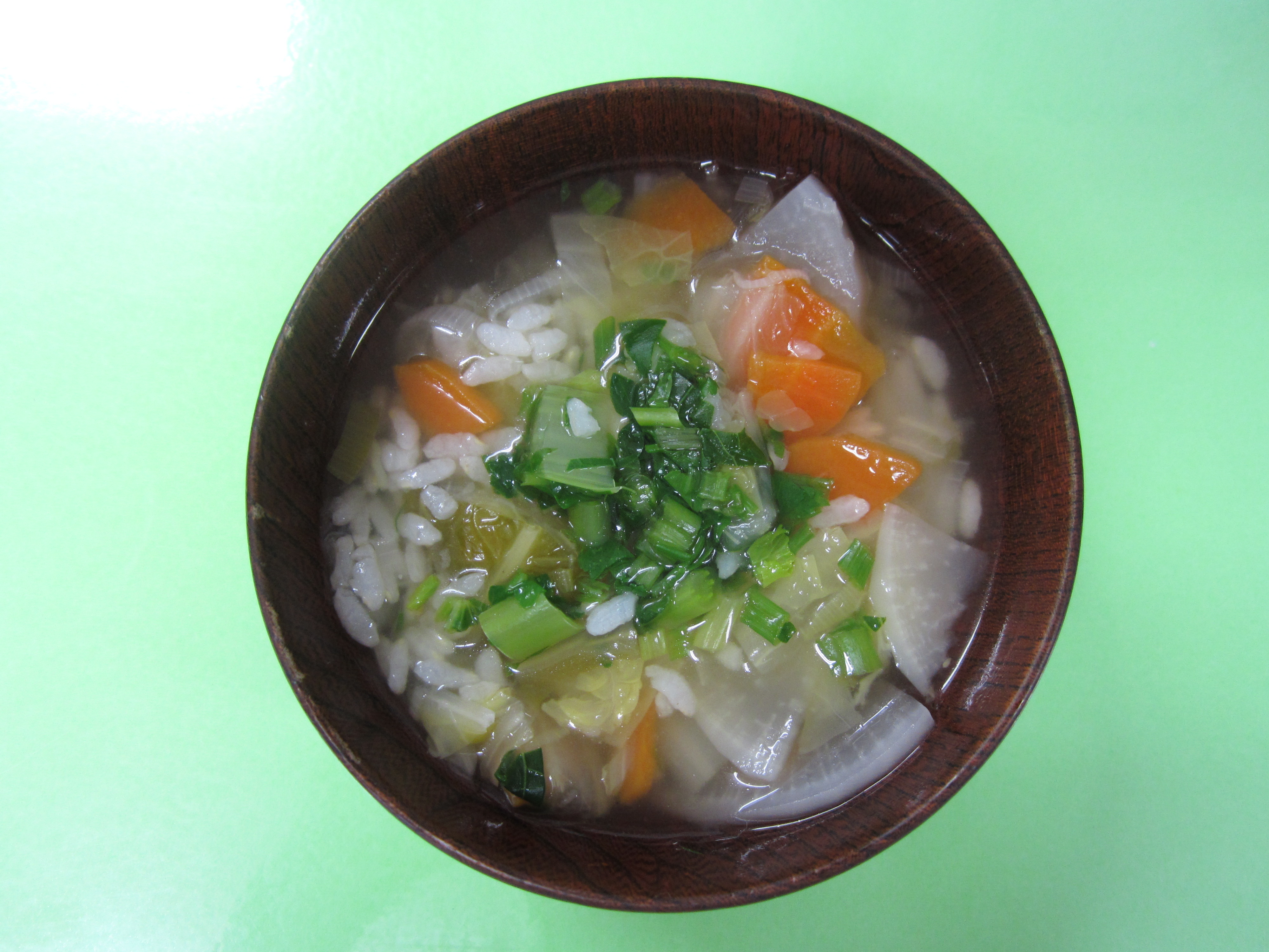 保育園の七草粥はよく出汁をとり、薄味で野菜の甘みがでるように仕上げています。