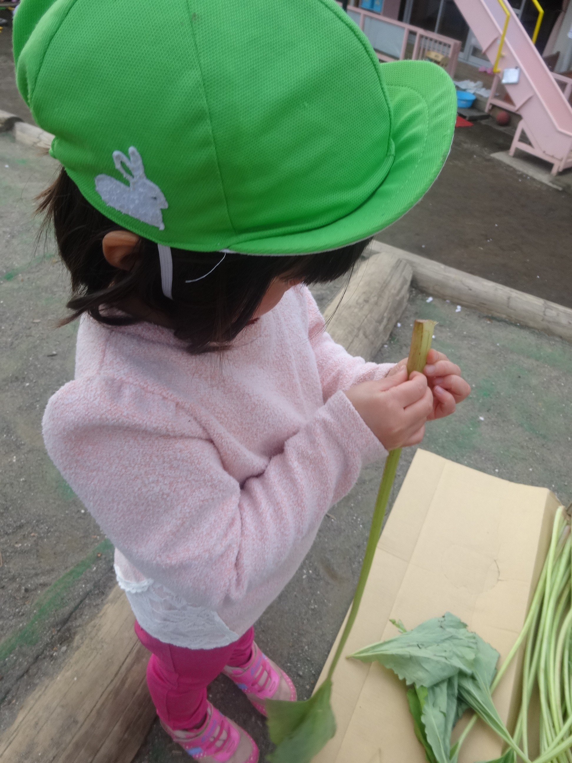 自分より長いふきを持って一生懸命剥いていたつばめぐみさん。