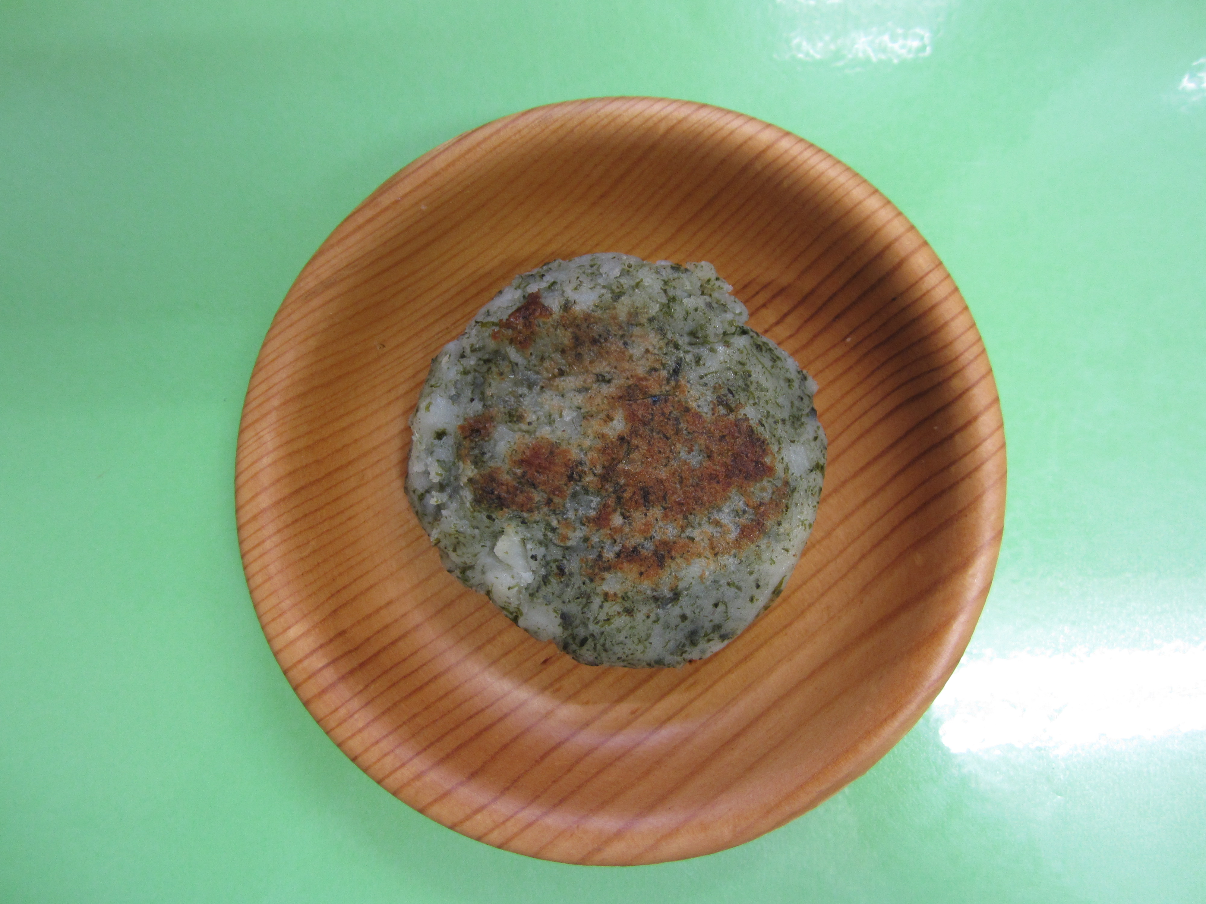 じゃが芋をマッシュしたところに、青のりを混ぜて両面焼くと出来上がり(*’▽’)