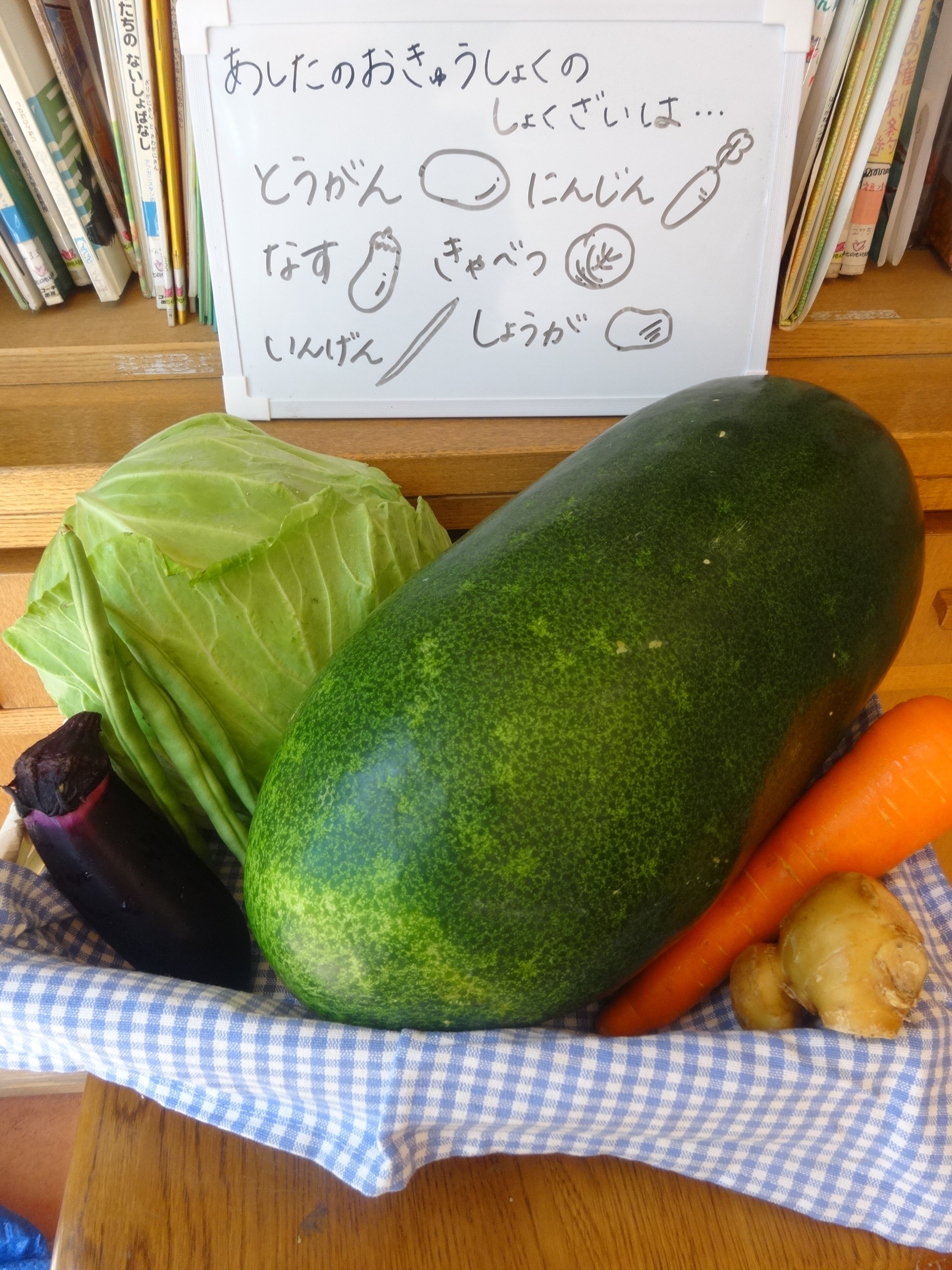 馴染みのない冬瓜ですが、子どもたちは「だいこんみたいだね」と