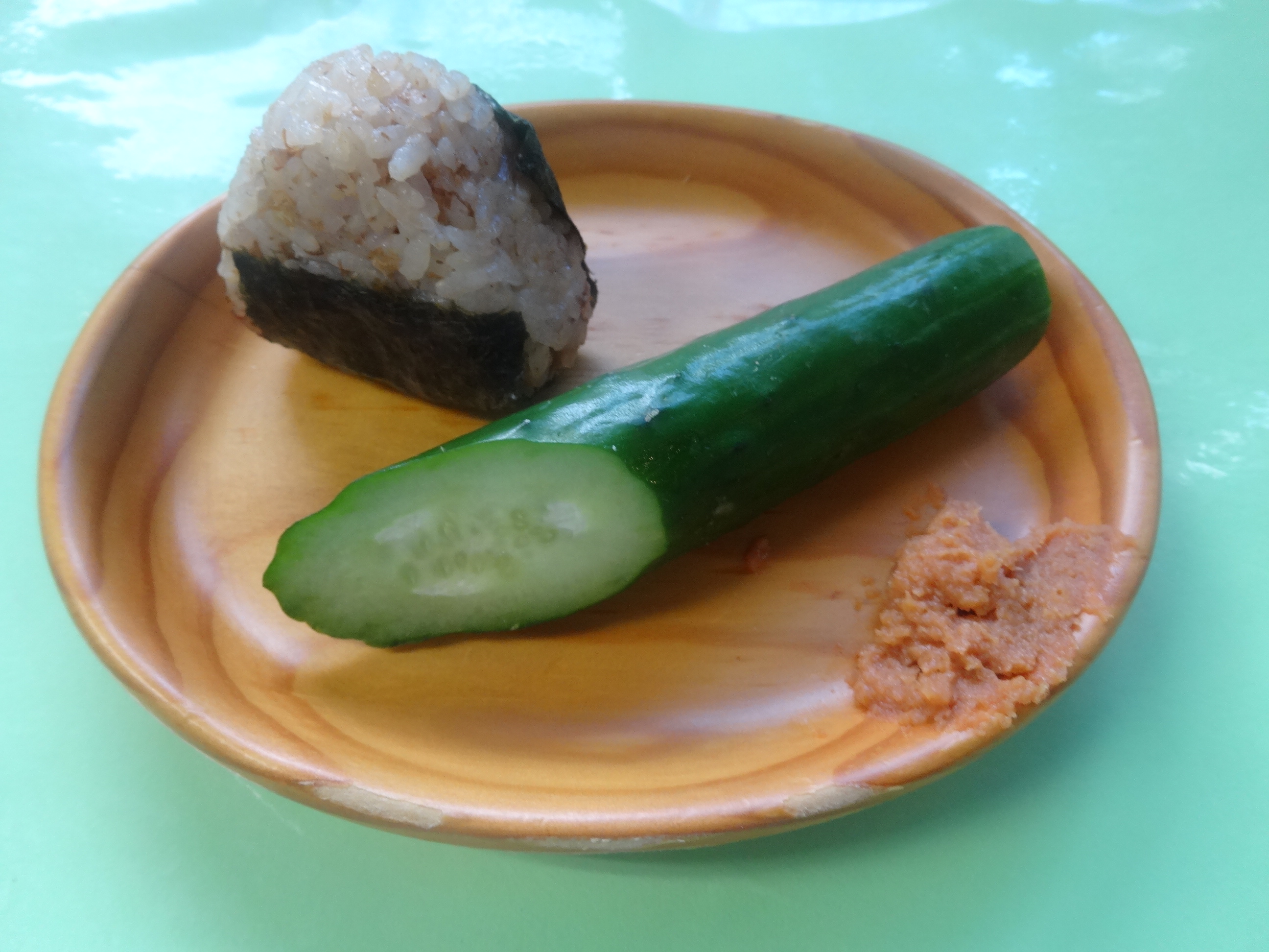 おひさまぐみ(5歳児)の子どもたちは冬に仕込んだ手作りみそを漬けて食べました。