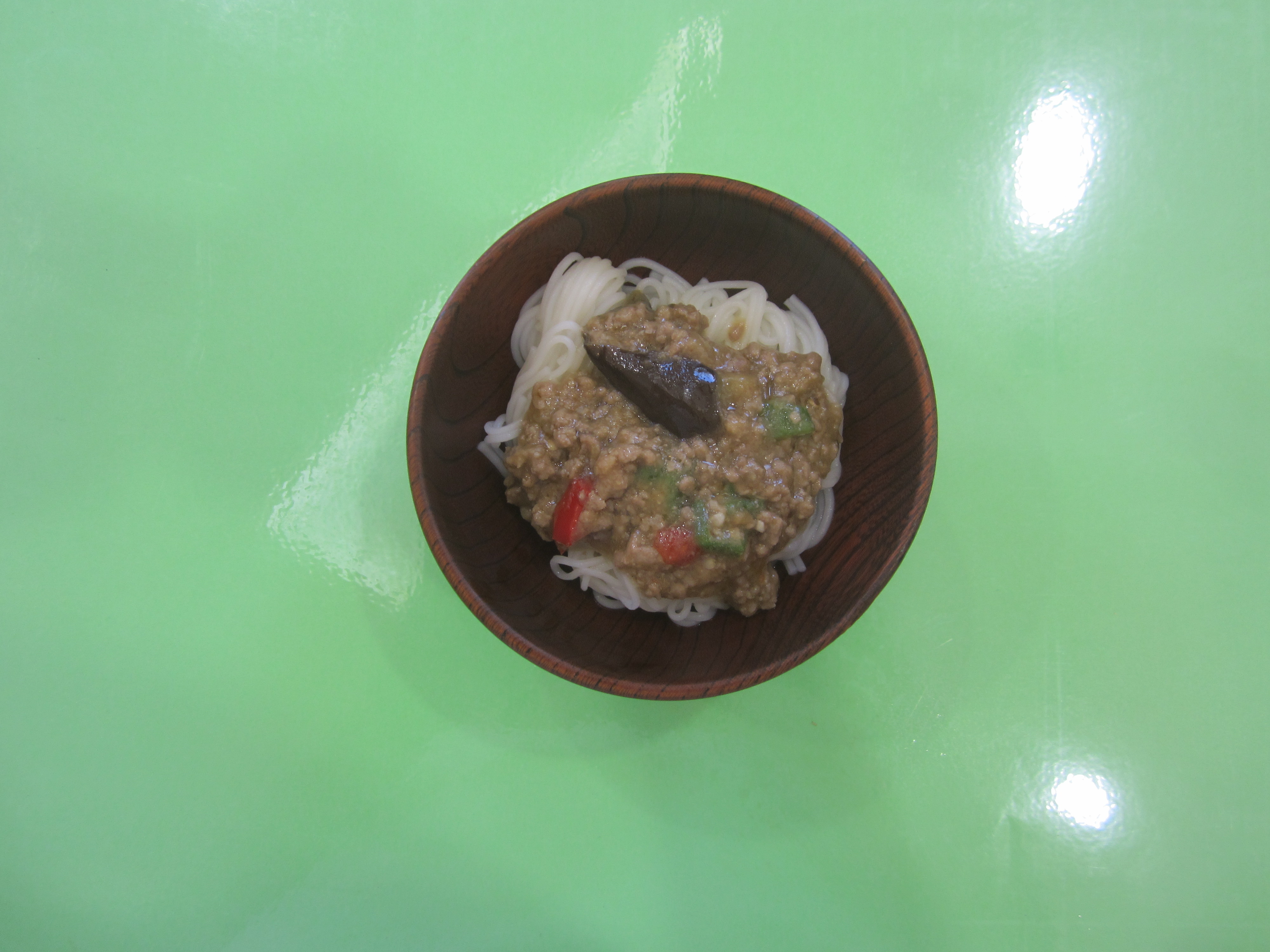肉味噌をそうめんの上にかけていただくメニューなんです。