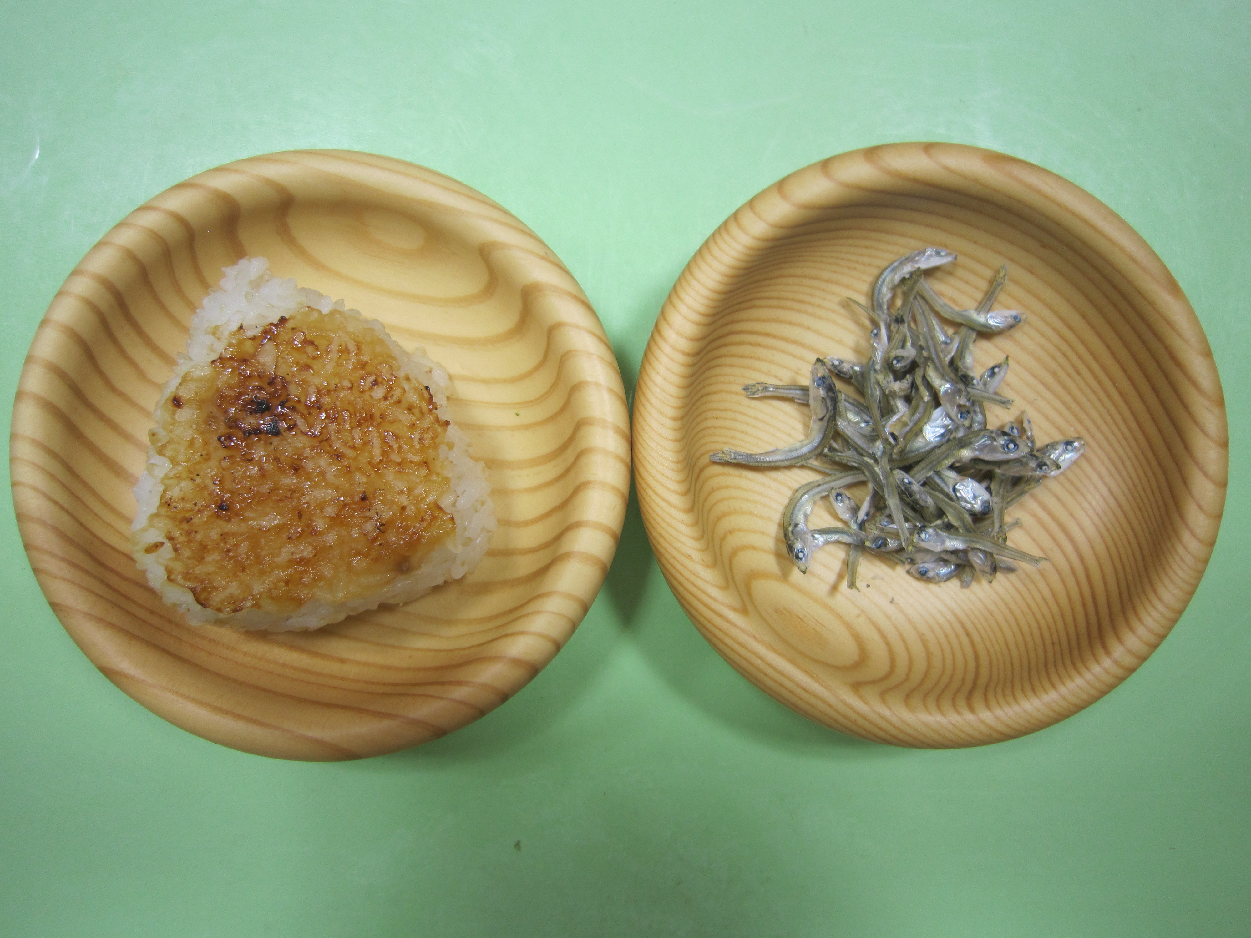焼きおにぎりのとなりには、小さなじゃこ。