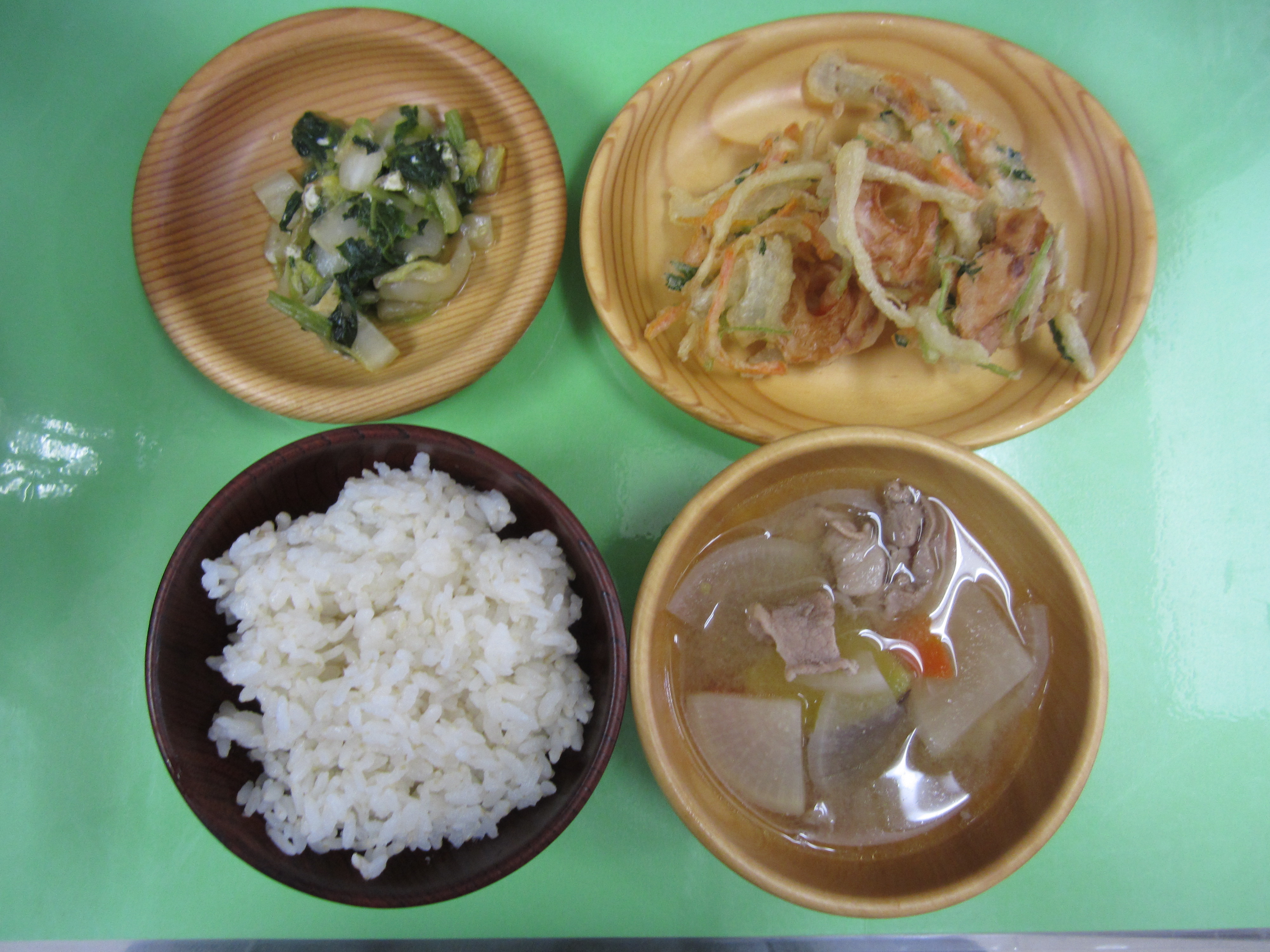 まだまだ寒い日が続いていますね。給食室にもピューピュー寒い風が届いています。