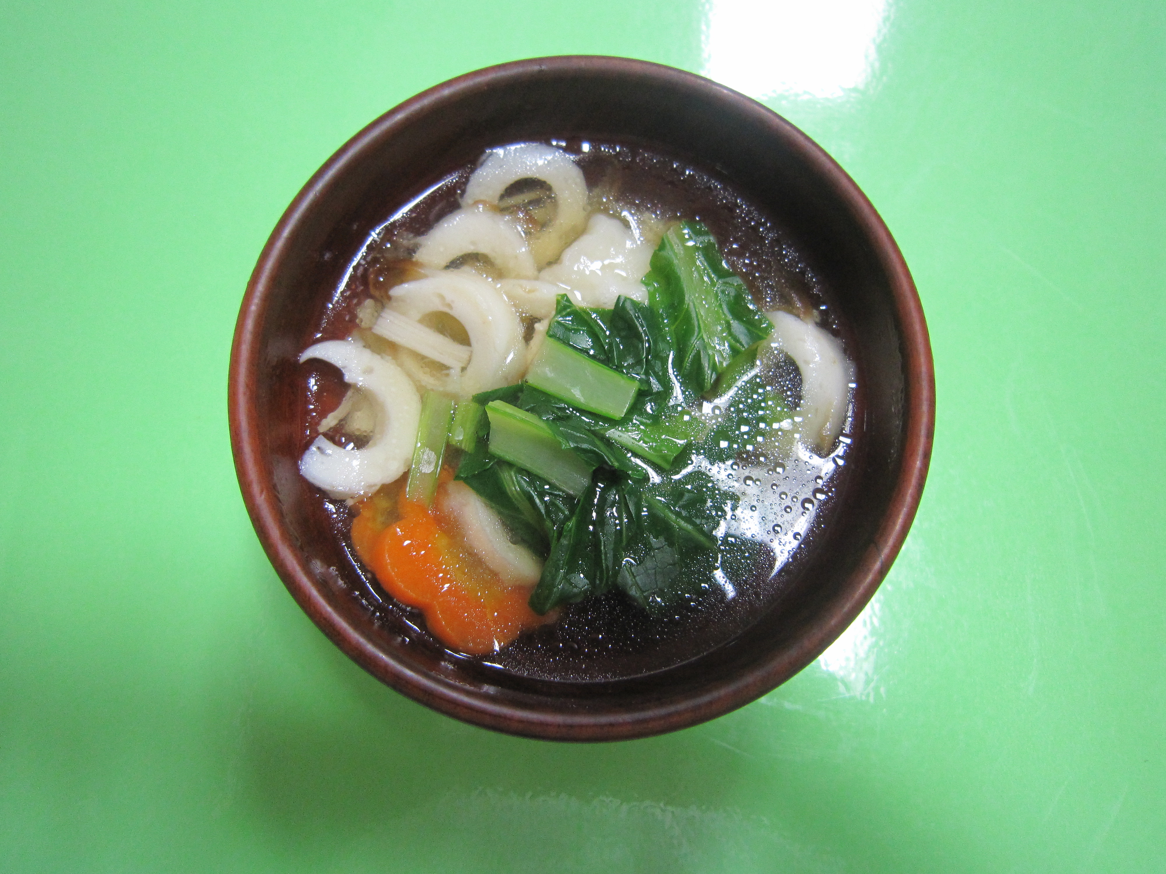 健康で幸せな年を保育園みんなで願いました。おやつはお雑煮です。