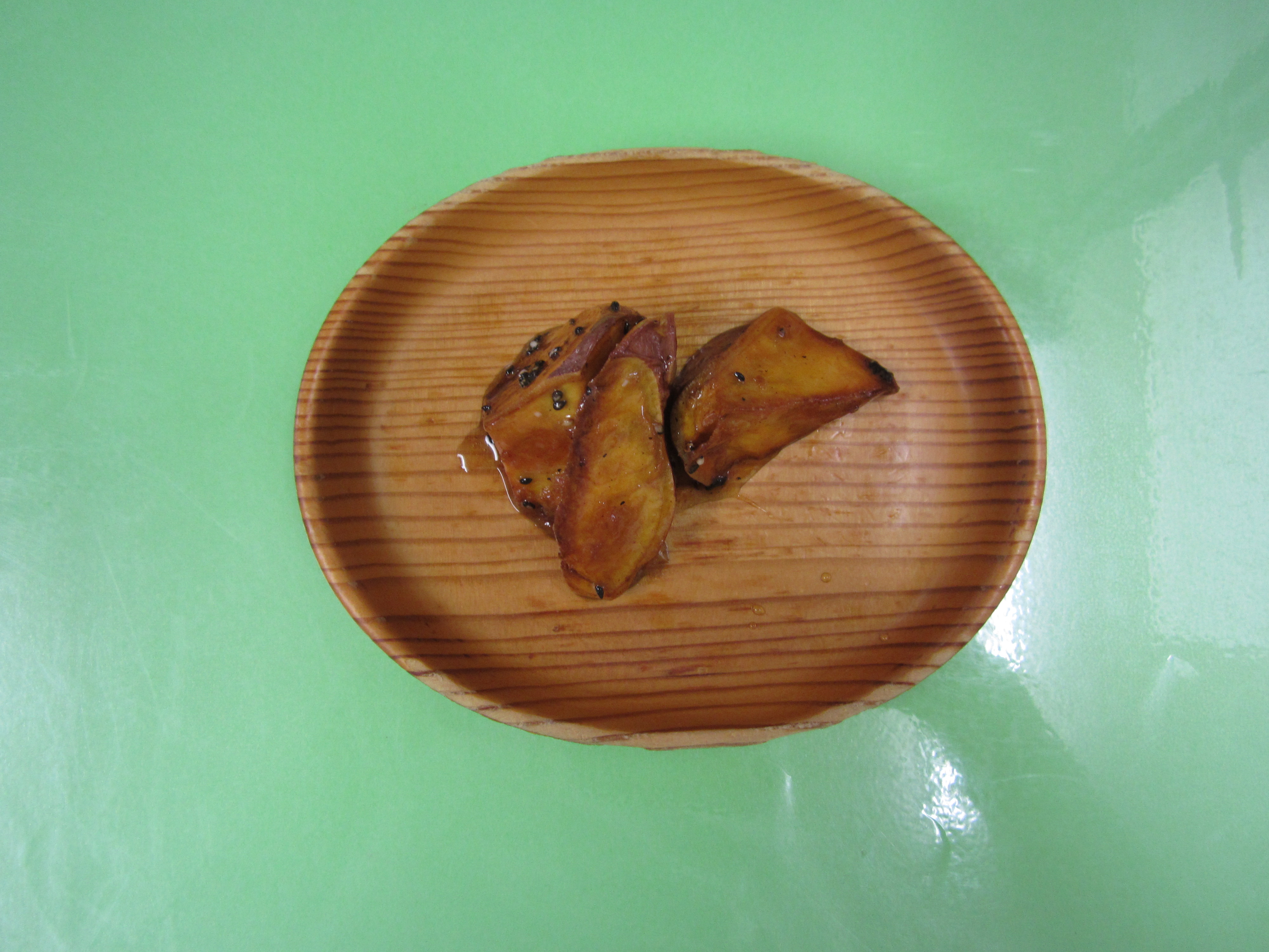 みりん、砂糖、しょうゆを煮詰めたたれに、黒ゴマの香ばしい風味が効いた大学芋です。