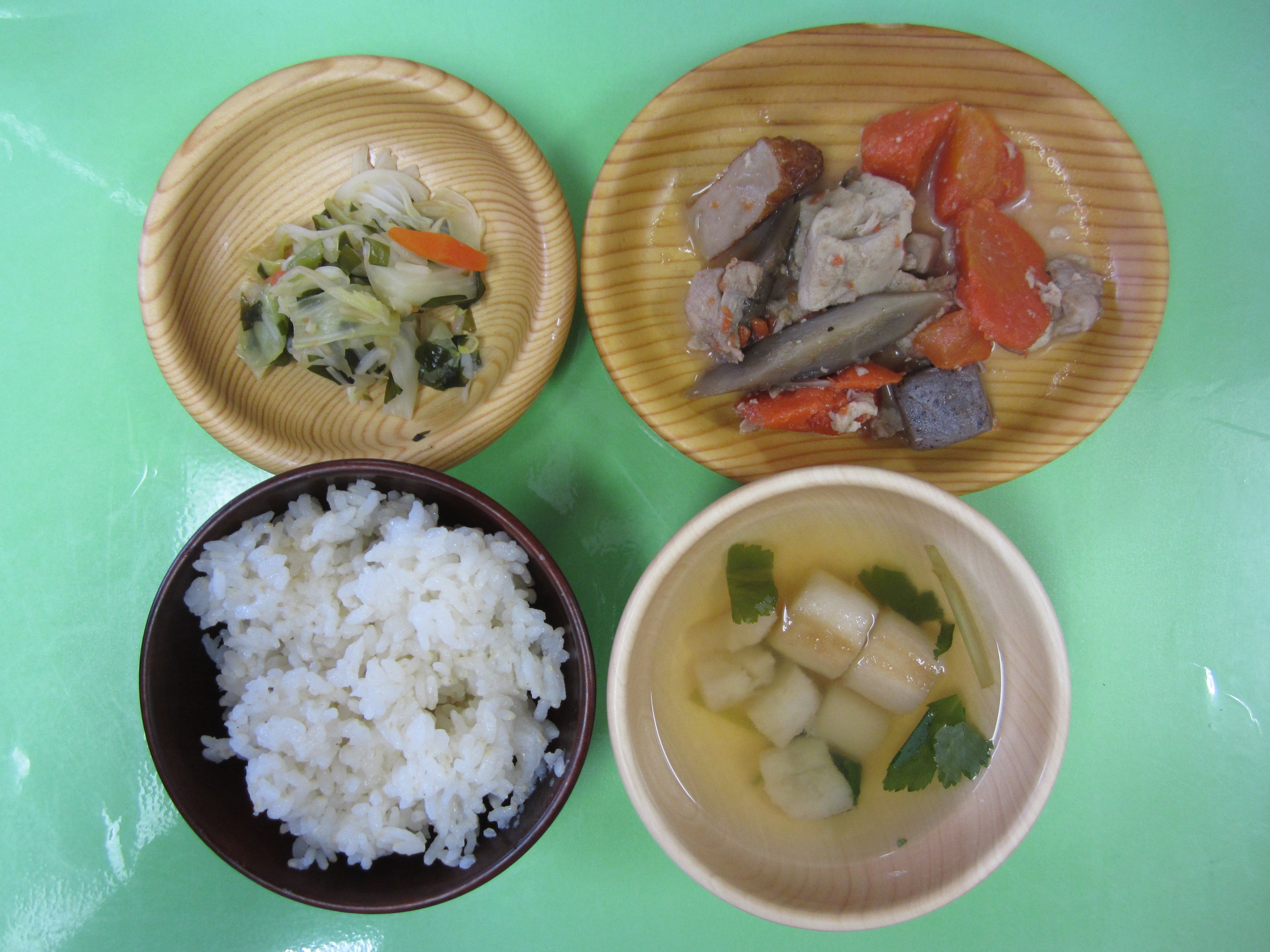 給食室の朝は大きな寸胴鍋にたっぷりお出汁を取る事から始まります。